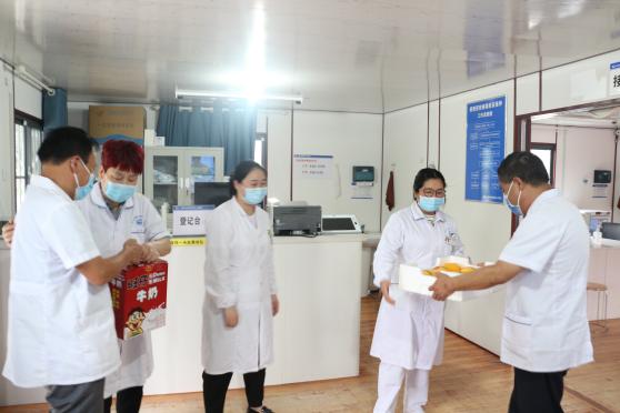 “天气热了,一定要注意身体。”“大家辛苦了,要注意做好防暑降温工作。”声声问候,句句关切。医院领导向在高温烈日下仍奋战一线的医护人员致以慰问,对大家不畏酷暑、守岗敬业的精神状态表示敬意。同时,还深入医院发热门诊、疫苗接种点和医学隔离点等疫情防控重点部门,对抗疫一线的医务工作者忘我工作、无私奉献的精神表示衷心感谢和崇高敬意;对抗疫一线的医务工作者不畏高温暴雨、加班加点奋战在抗疫一线,以实际行动践行初心使命、为群众办实事的精神给予高度的赞扬,向大家送上一批防暑降温物资,叮嘱大家在做好工作的同时,注意安全,做好自身防护,立足岗位,为疫情防控工作做出自己的努力,为党和人民做出新贡献。